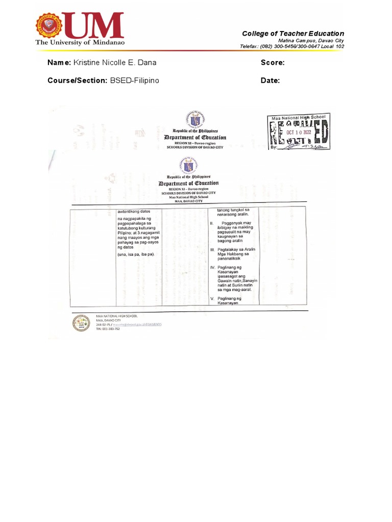 Course/Section: BSED-Filipino Date: