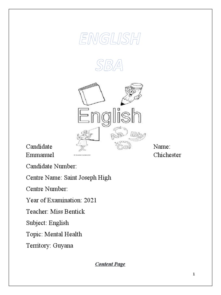 The topic chosen for my English SBA is ‘Mental Health’. I have seen
