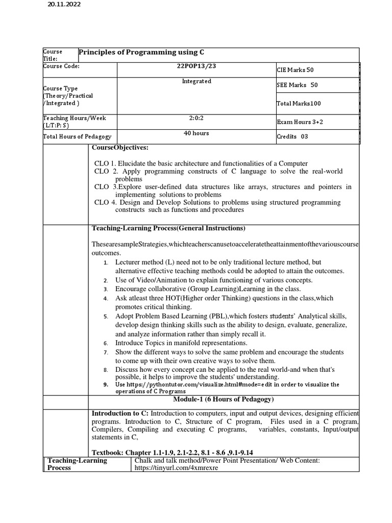 Course Principles of Programming using C