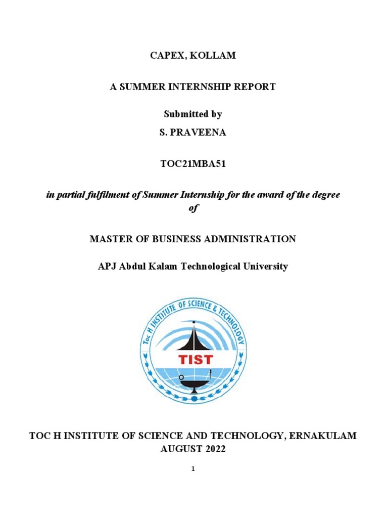 This is to certify that the report titled “CAPEX, KOLLAM” being submitted by