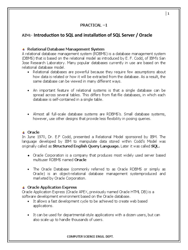 AIM:- Introduction to SQL and installation of SQL Server / Oracle