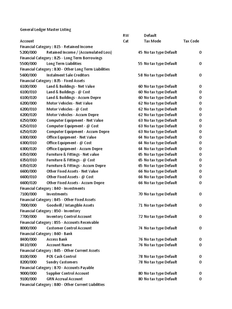 General Ledger Master Listing