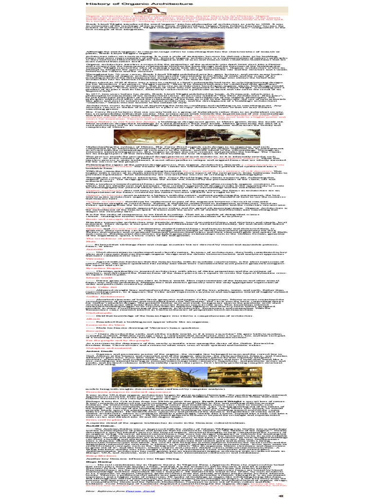 forms that were representative of nature. Instead, organic architecture is a reinterpretation of nature's principles