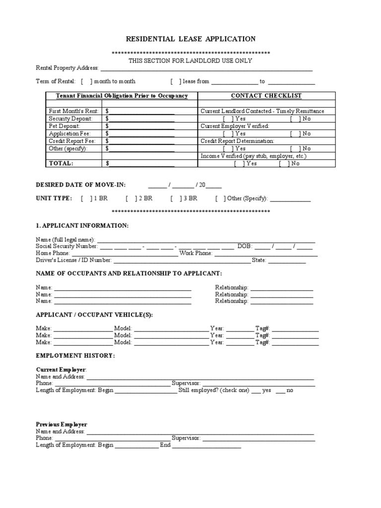 RESIDENTIAL LEASE APPLICATION