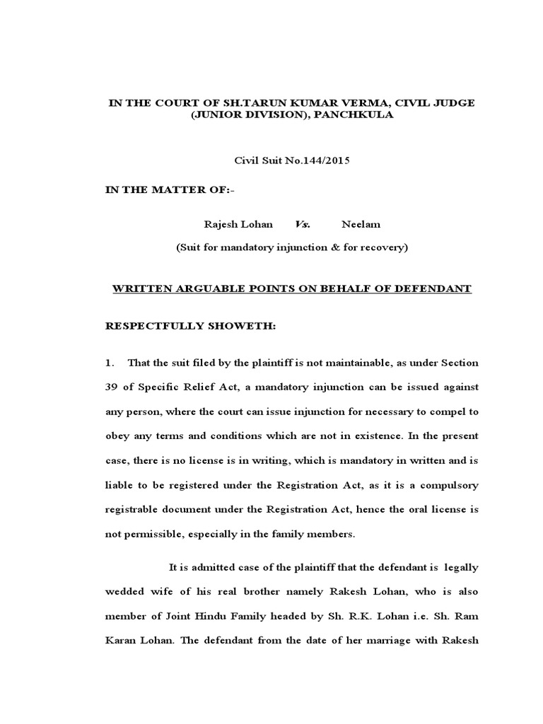 plaintiff and his brother Rakesh Lohan, who is husband of the defendant