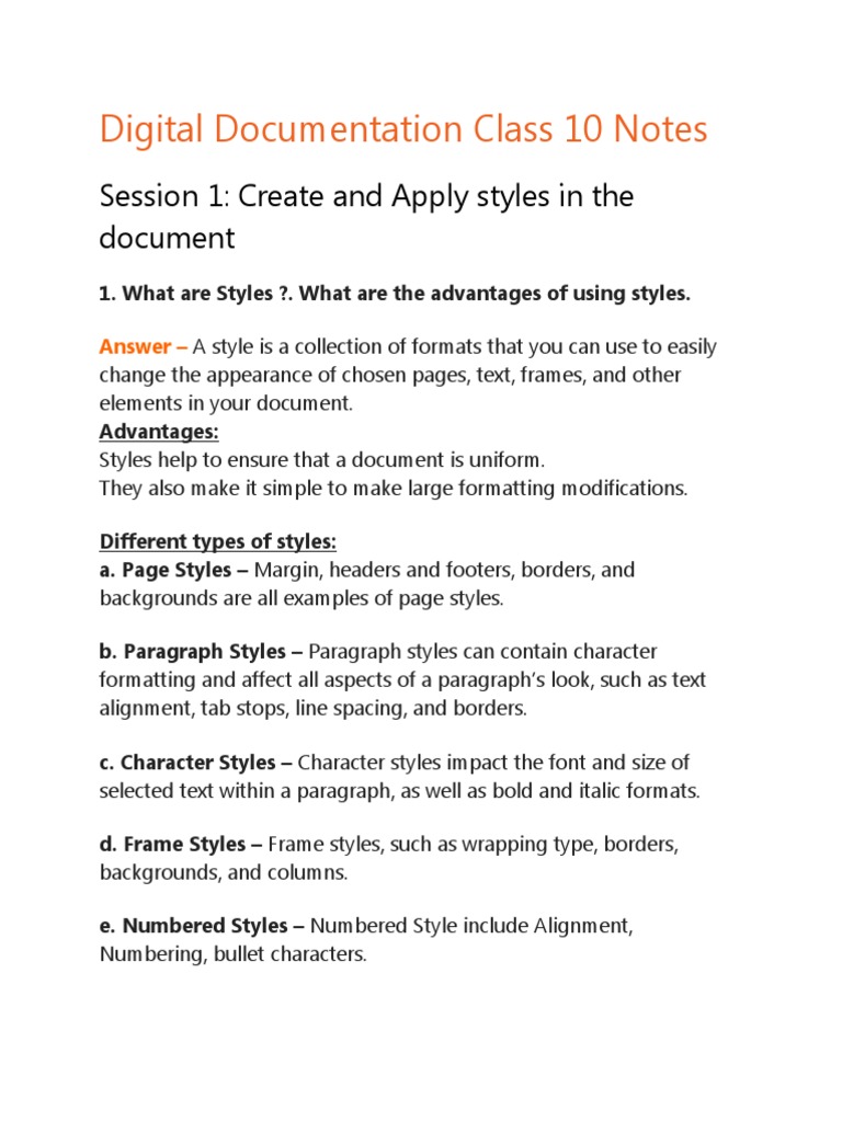 h. Presentation Styles – Font, indents, spacing, alignment, and tab