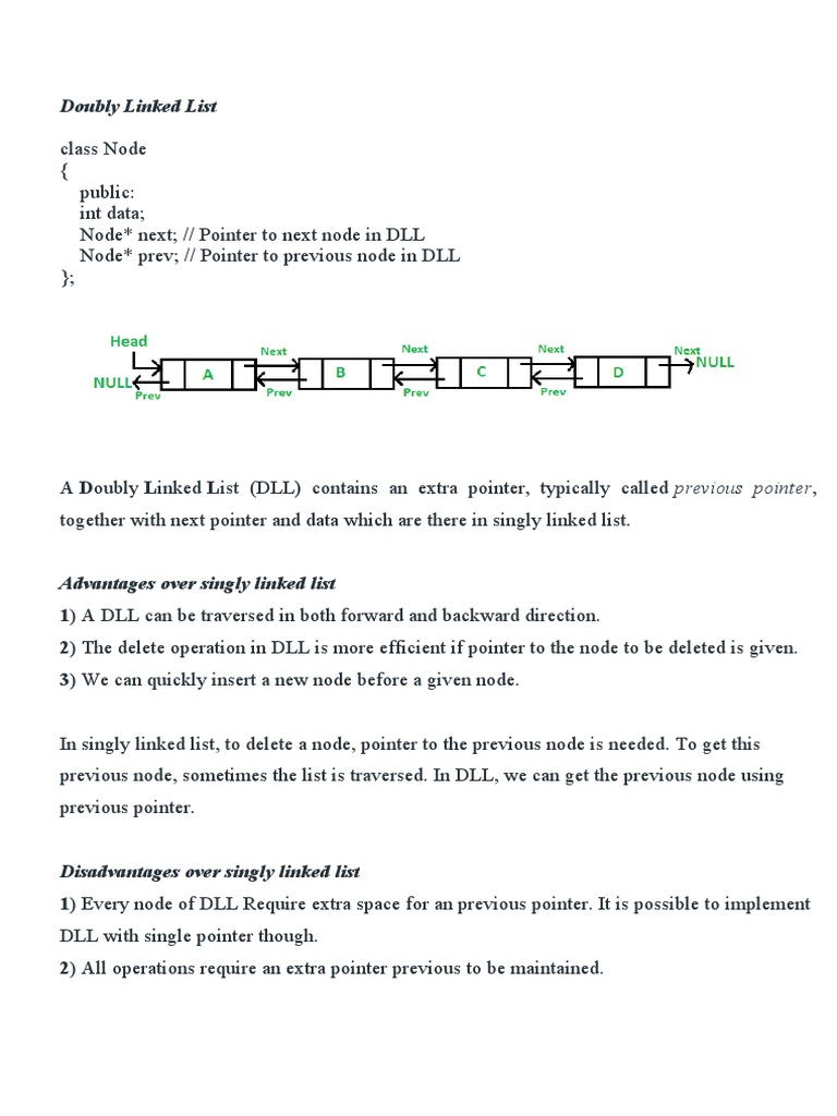 A Doubly Linked List (DLL) contains an extra pointer, typically called previous pointer,