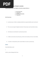 and implement the three constraints NOT NULL, UNIQUE, PRIMARY KEY on
