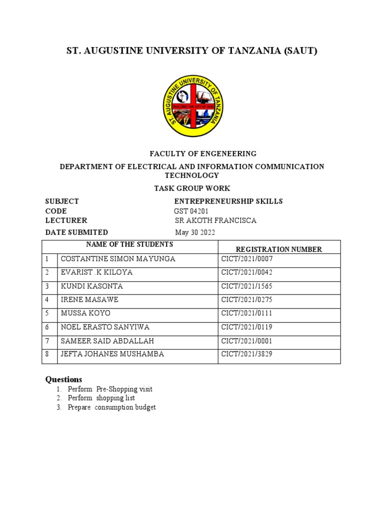 AUGUSTINE UNIVERSITY OF TANZANIA (SAUT)