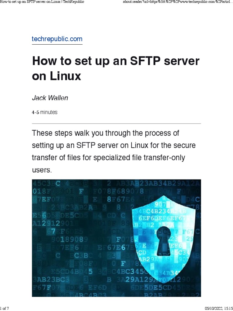 How to set up an SFTP server on Linux | TechRepublic about:reader?url=https%3A%2F%2Fwww.techrepublic.com%2Farticl...