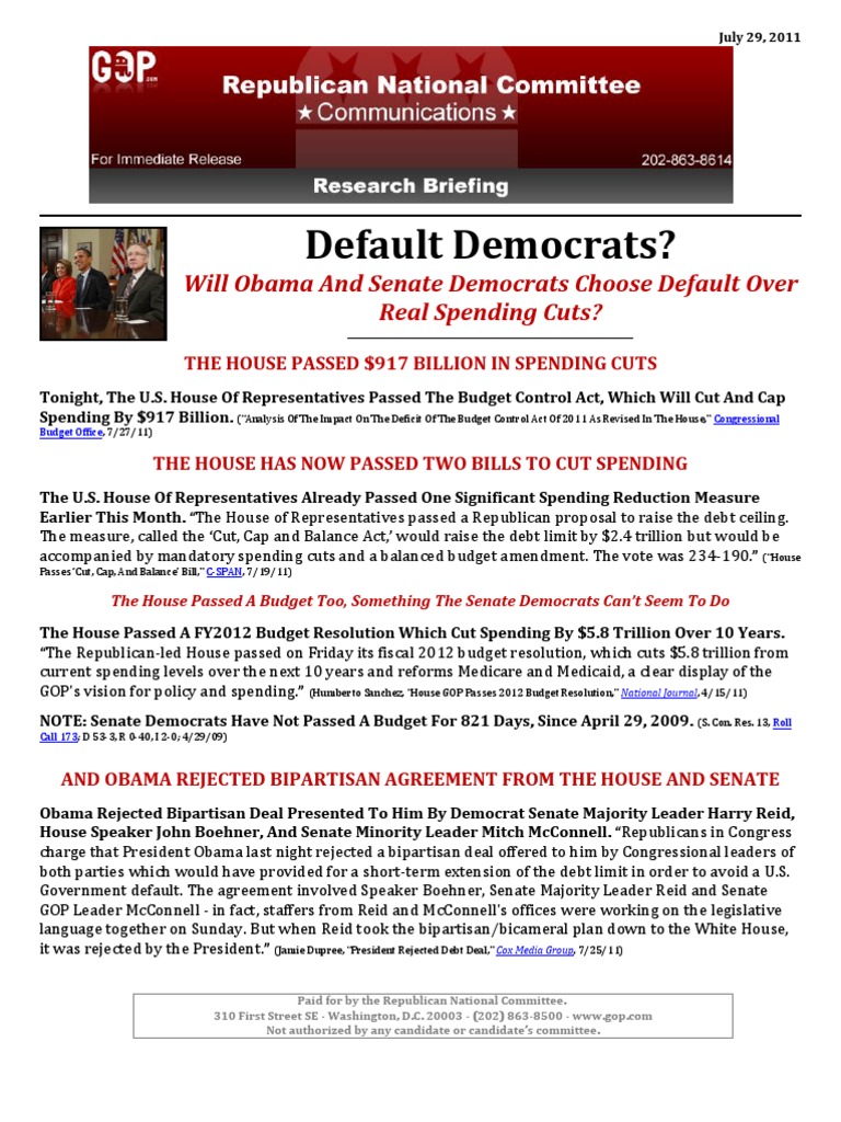 Will Obama And Senate Democrats Choose Default Over Real Spending Cuts?
