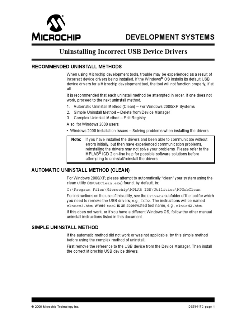 need to be uninstalled so that the correct Microchip tool USB drivers may be installed.
