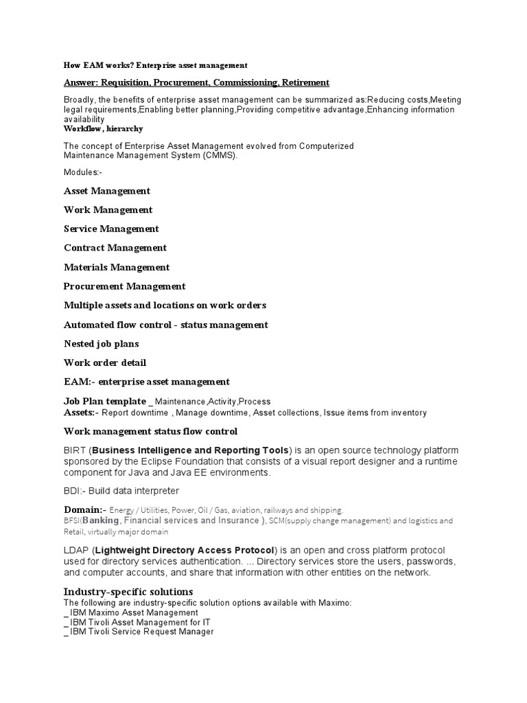 Broadly, the benefits of enterprise asset management can be summarized as:Reducing costs,Meeting