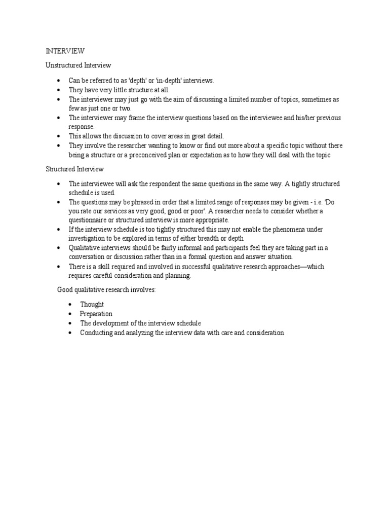 Qualitative interviews should be fairly informal and participants feel they are taking part in a