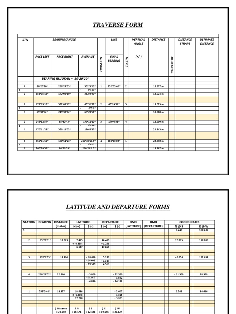 ∑ Distance ∑N ∑S ∑E ∑W