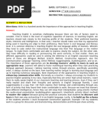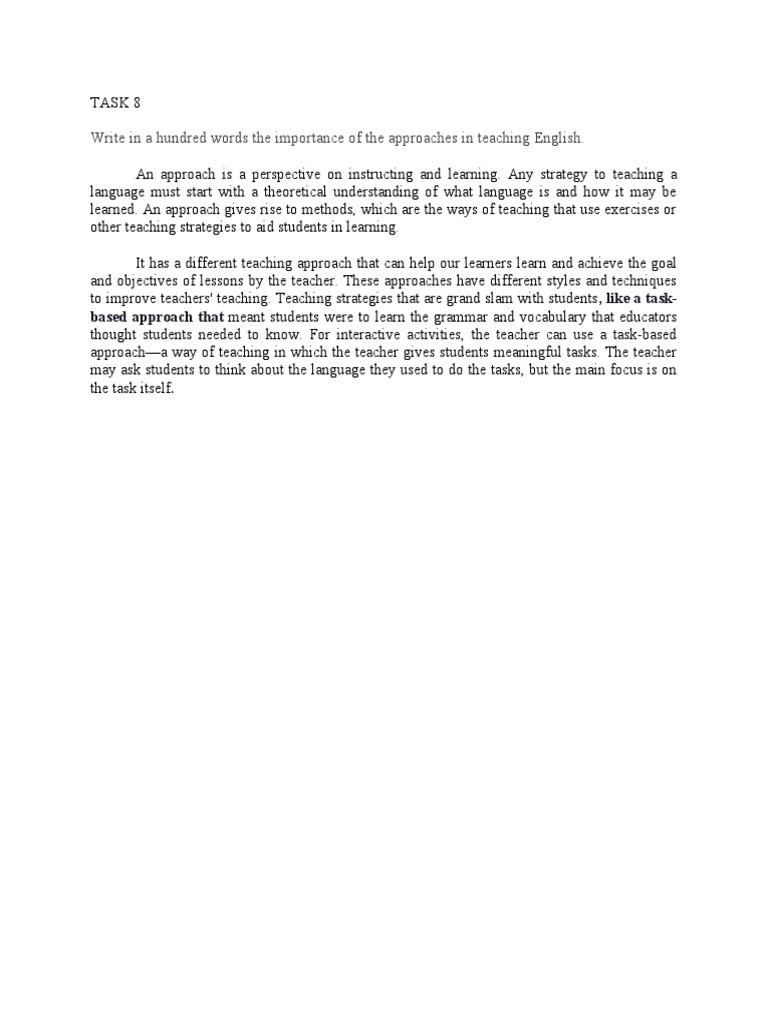 learned. An approach gives rise to methods, which are the ways of teaching that use exercises or