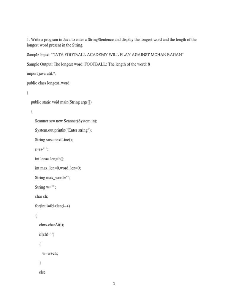 Sample Output: The longest word: FOOTBALL: The length of the word: 8