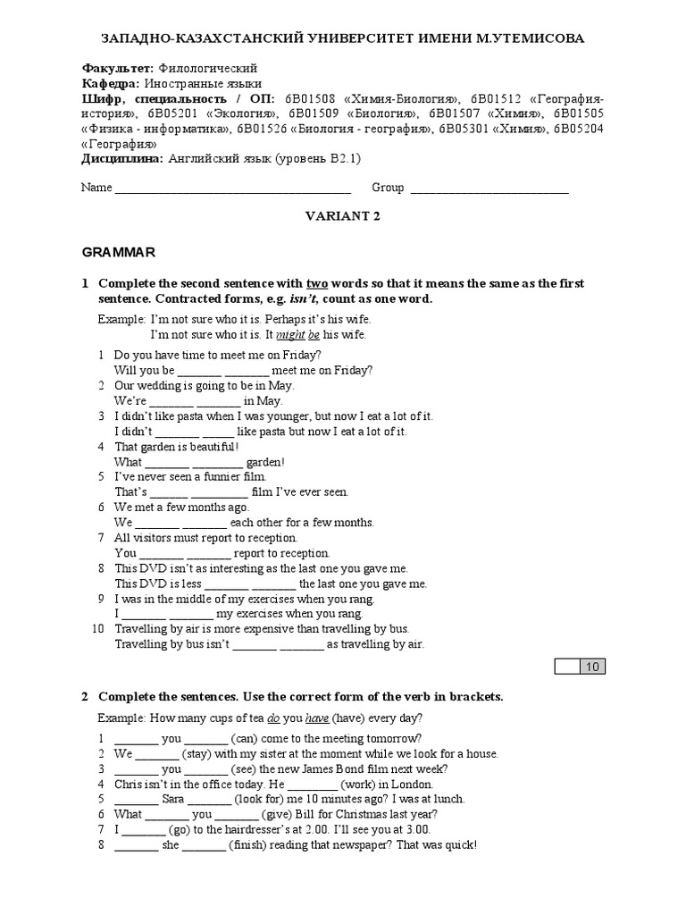 sentence. Contracted forms, e.g. isn’t, count as one word.