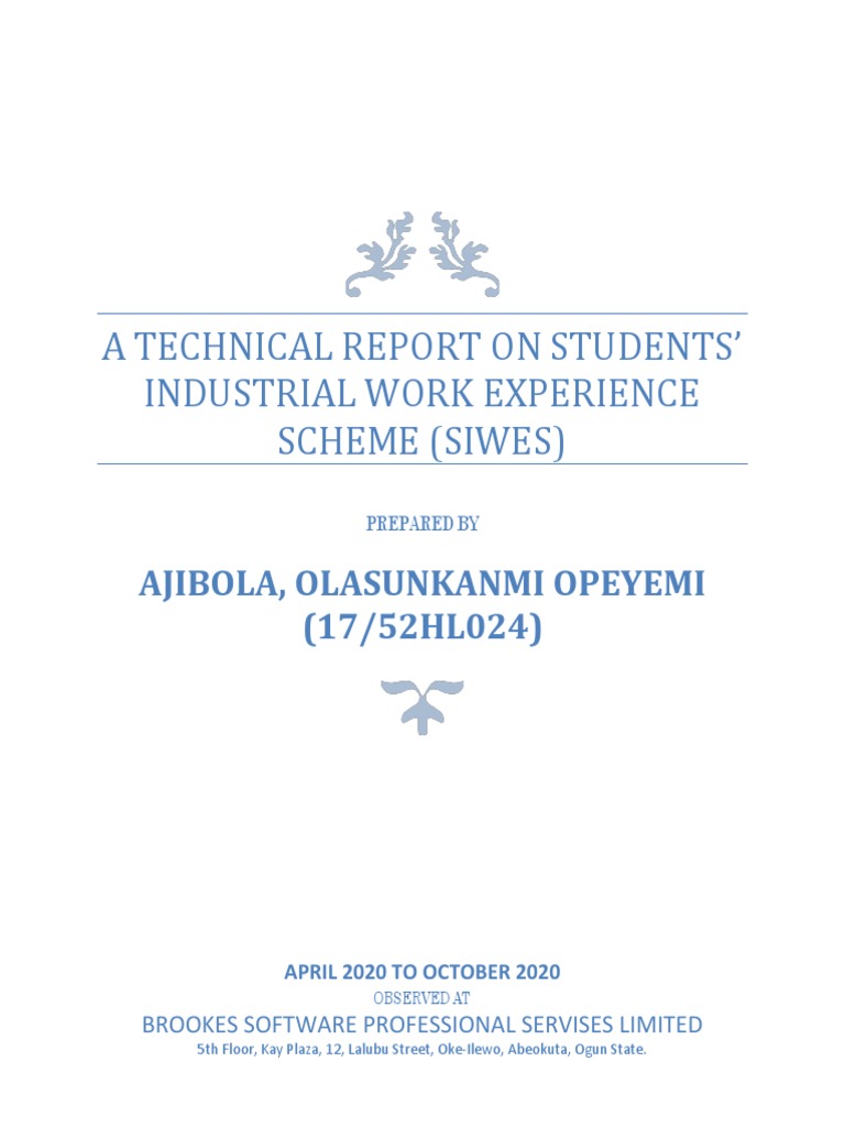 SIWES REPORT BY AJIBOLA OLASUNKANMI O. (17/52HL024) 1