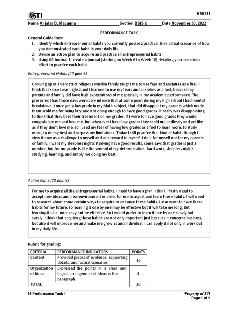 1. Identify which entrepreneurial habits you currently possess/practice. Give actual scenarios of how