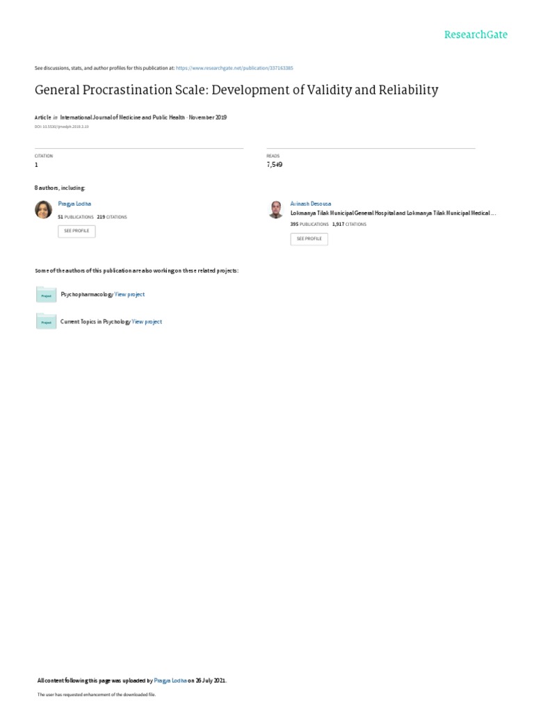 The General Procrastination Scale was developed by Lodha et. (2016). With 23 items in total, the