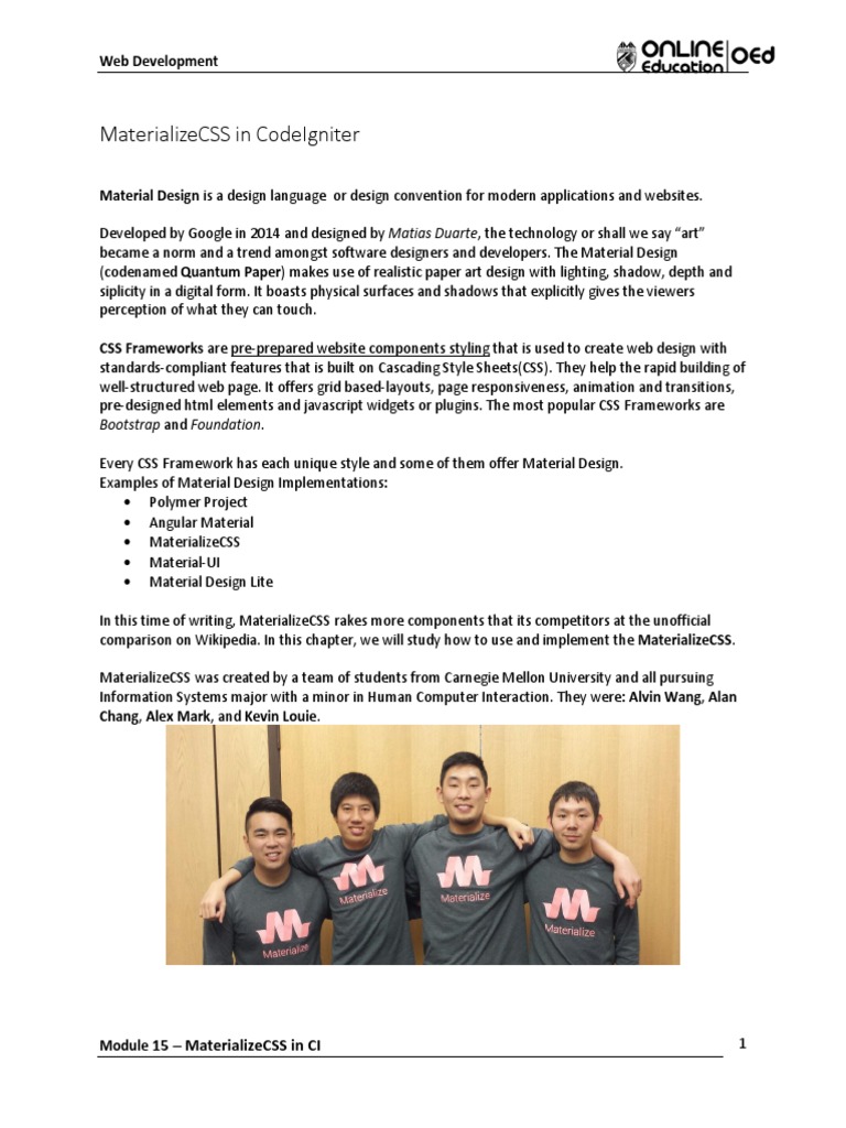 comparison on Wikipedia. In this chapter, we will study how to use and implement the MaterializeCSS.