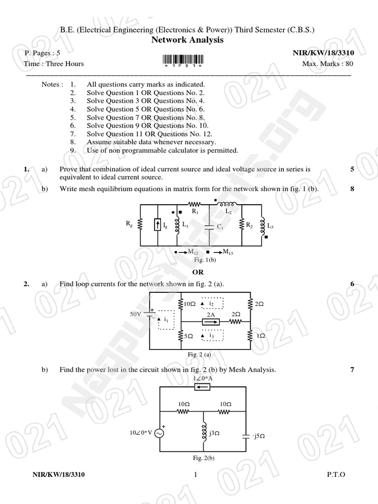 b) Write mesh equilibrium equations in matrix form for the network shown in fig. 1 (b). 8