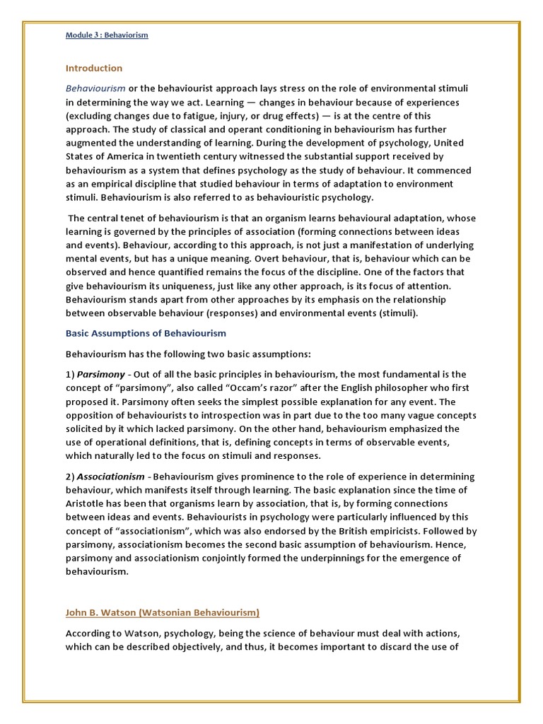 1) Parsimony - Out of all the basic principles in behaviourism, the most fundamental is the