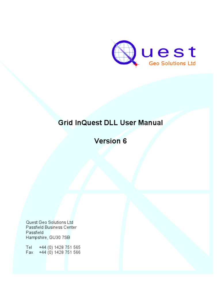 Quest Geo Solutions Ltd Passfield Business Center Passfield Hampshire, GU30 7SB Tel Fax +44 (0) 1428 751 565 +44 (0) 1428 751 566