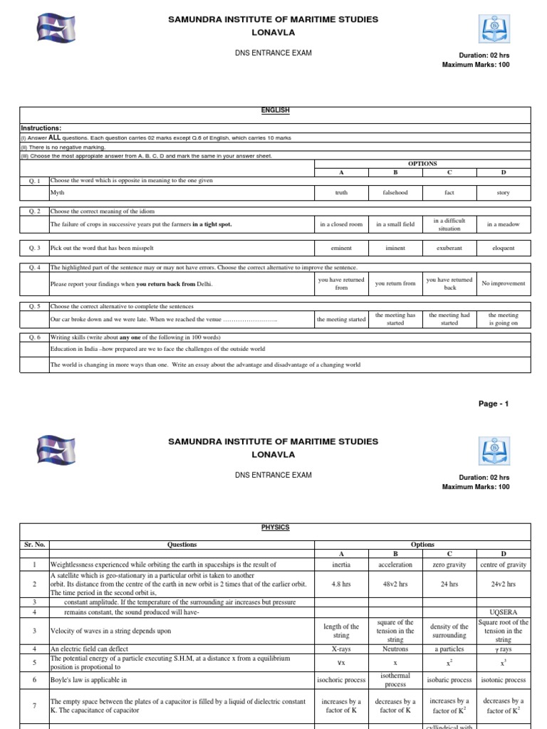 Instructions: (i) Answer ALL questions. Each question carries 02 marks except Q.6 of English, which carries 10 marks (ii) There is no negative marking. (iii) Choose the most appropiate answer from A, B, C, D and mark the same in your answer sheet.