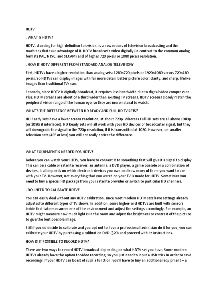 . WHAT IS HDTV?