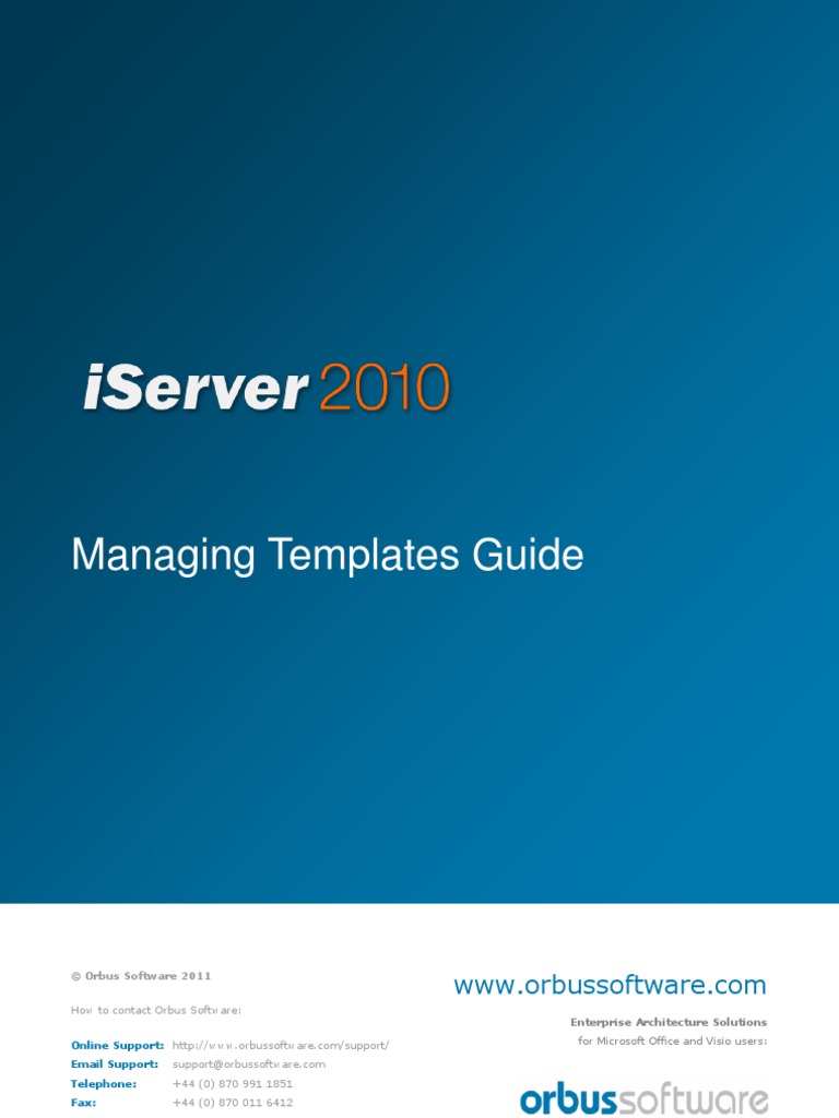 Orbus Software 2011 How to contact Orbus Software: Online Support: http://www.orbussoftware.com/support/ Email Support: Telephone: Fax: support@orbussoftware.com +44 (0) 870 991 1851 +44 (0) 870 011 6412