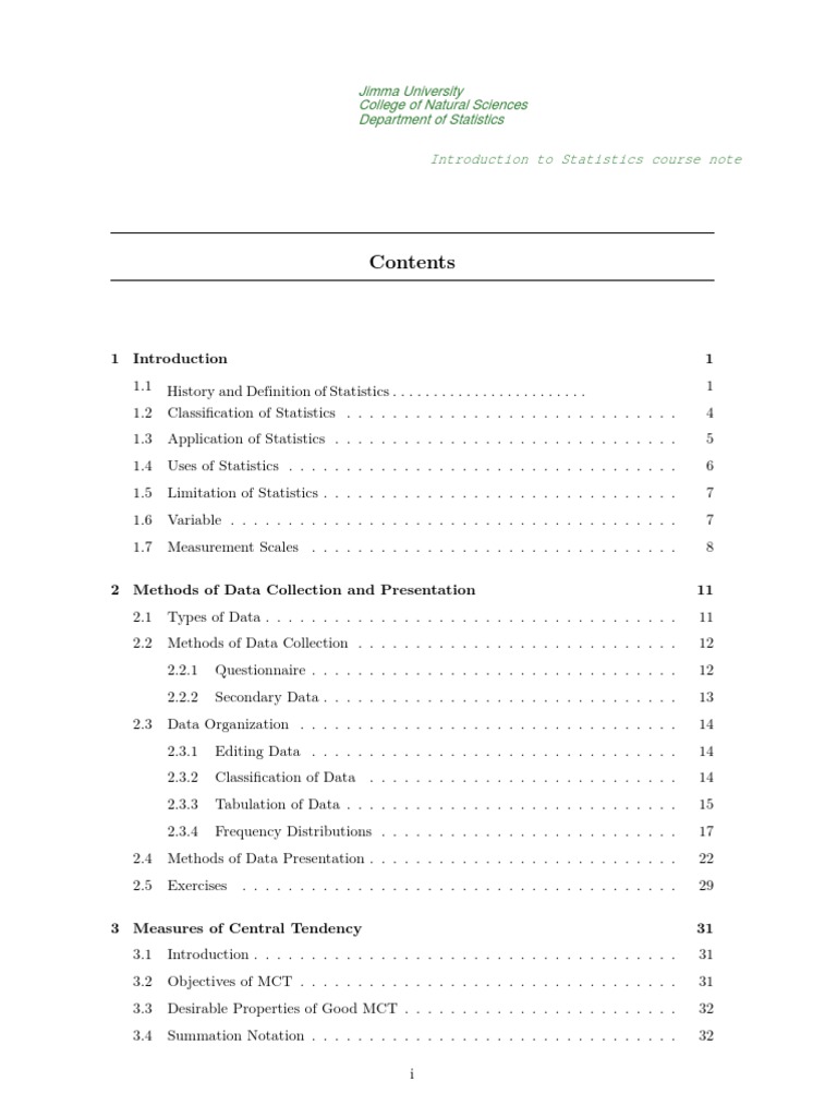 1.2 Classification of Statistics . . . . . . . . . . . . . . . . . . . . . . . . . . . . . 4