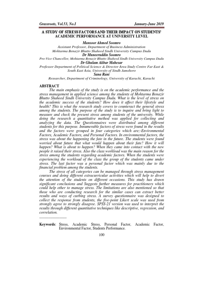 Saqib, M., & Kaleem, U. R. (2018, February 13). Impact of Stress on Students