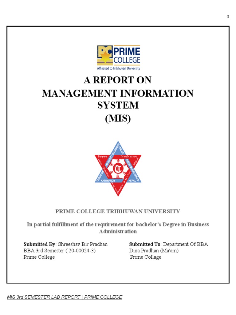 MIS 3rd SEMESTER LAB REPORT | PRIME COLLEGE