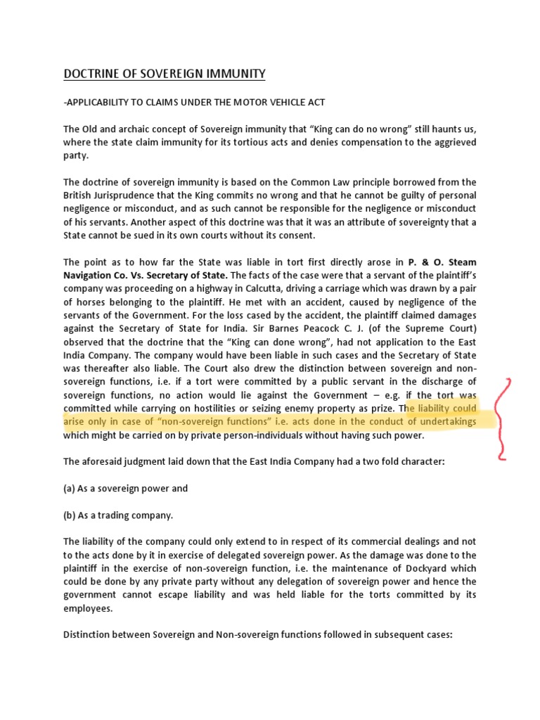 How far sovereign immunity is available in motor accident cases has however, been the subject-