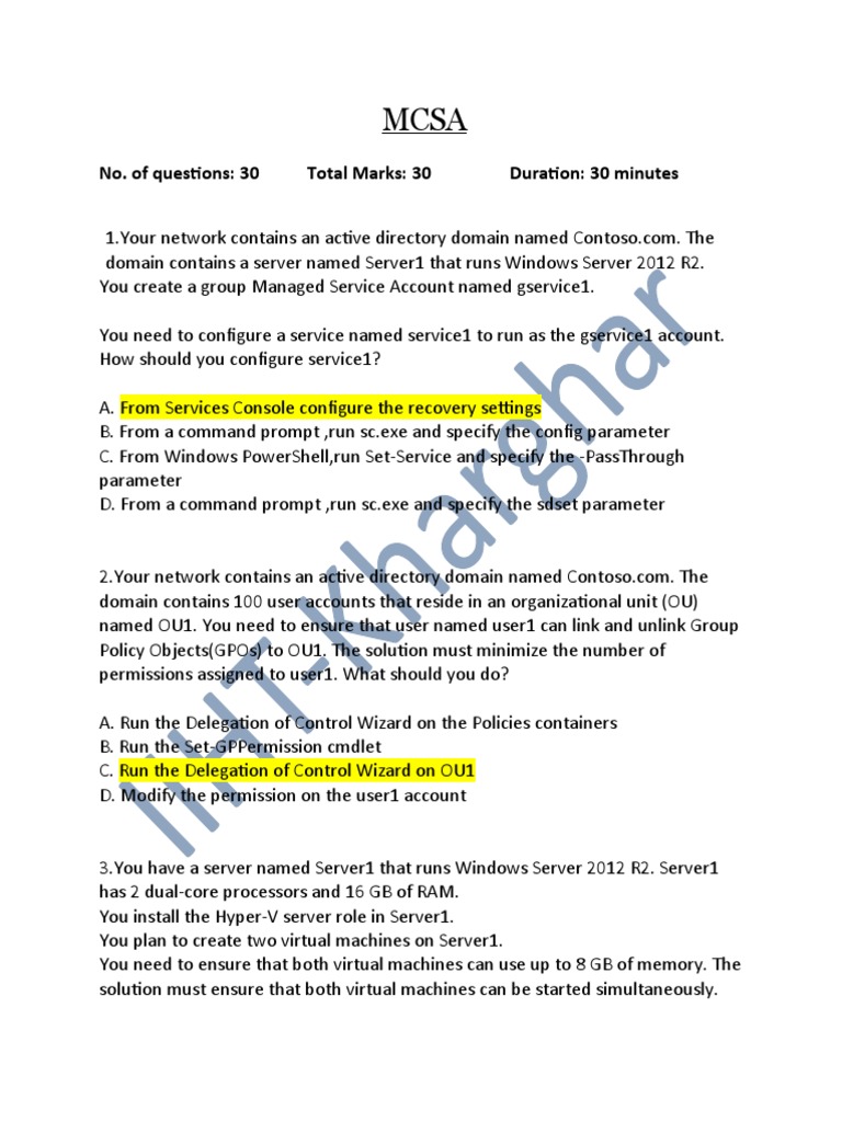 1.Your network contains an active directory domain named Contoso.com. The