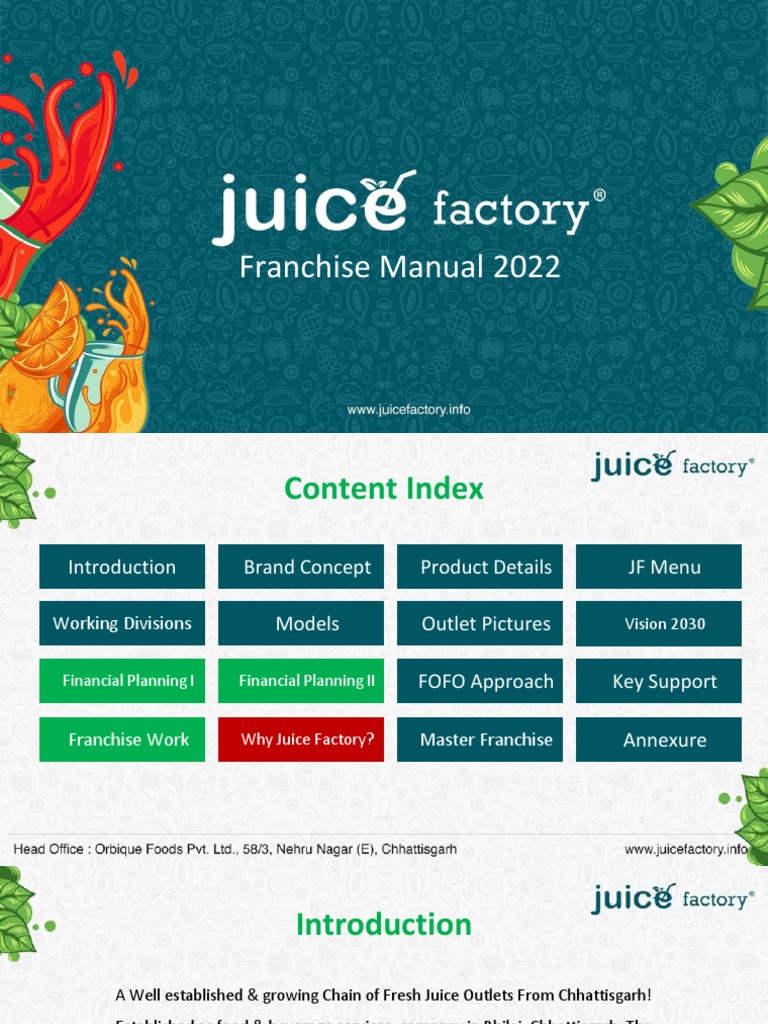 Franchise Work Why Juice Factory? Master Franchise Annexure