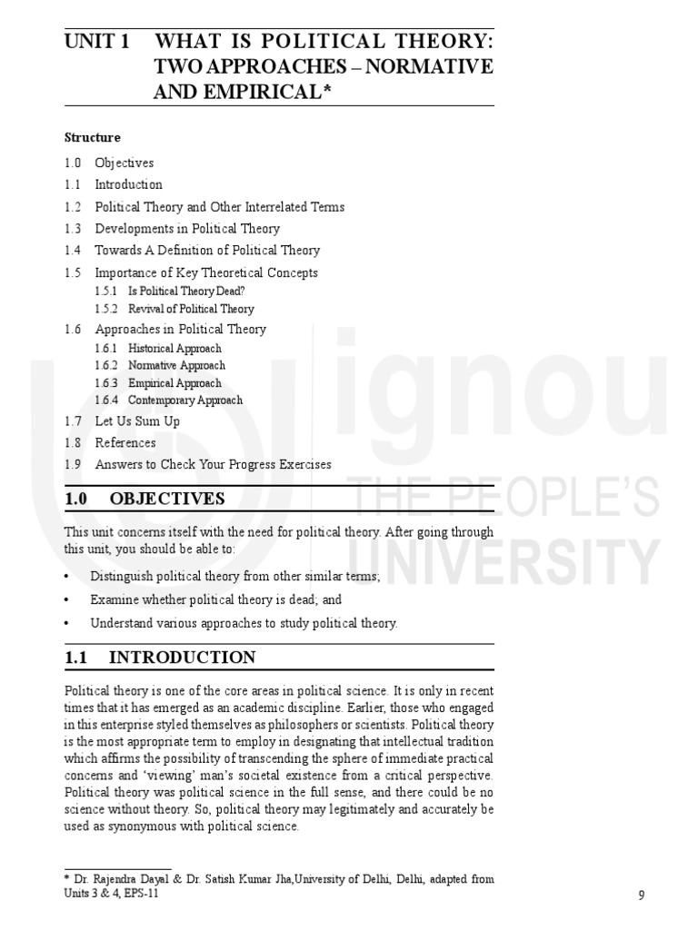 The mode of enquiry is comparative and explanatory. Political theory attempts