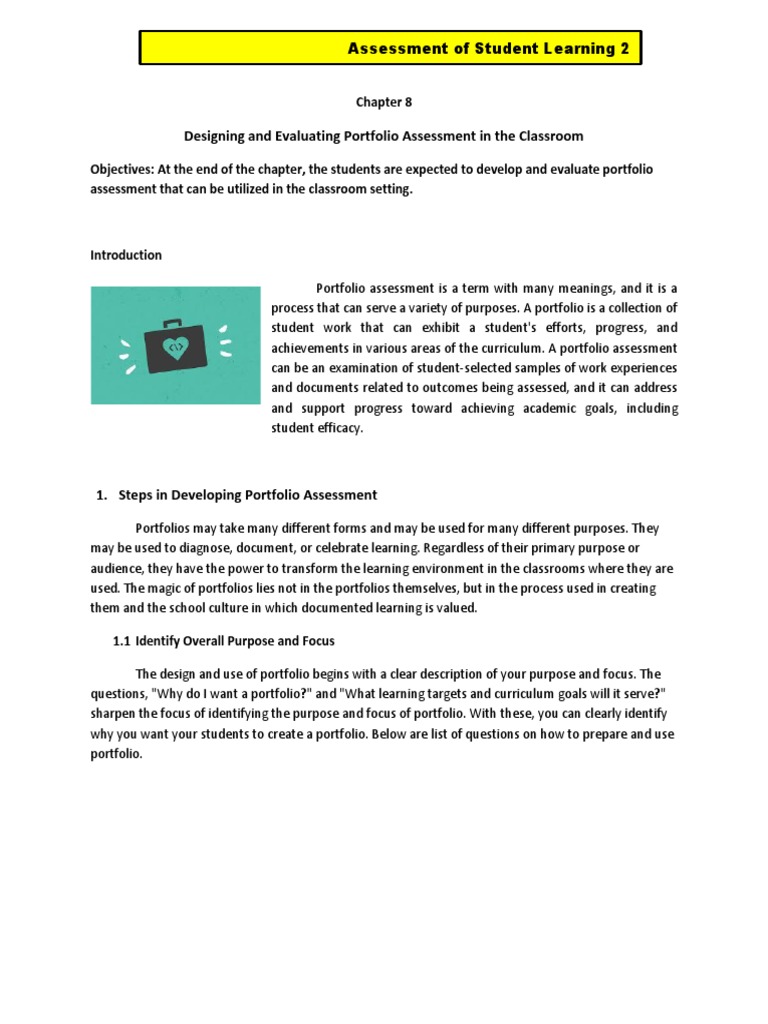 portfolio assessment is based from the importance and focus of the learning targets. It necessitates that