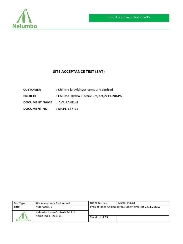 This document describes the Generator Relay Metering Panel item to be tested on a SAT period. The SAT