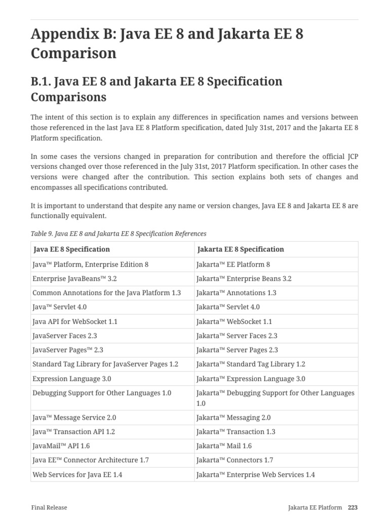 B.1. Java EE 8 and Jakarta EE 8 Specification
