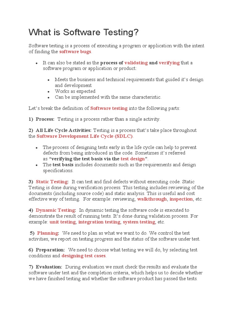 2) All Life Cycle Activities: Testing is a process that’s take place throughout