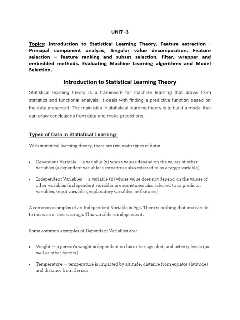 Topics: Introduction to Statistical Learning Theory, Feature extraction -
