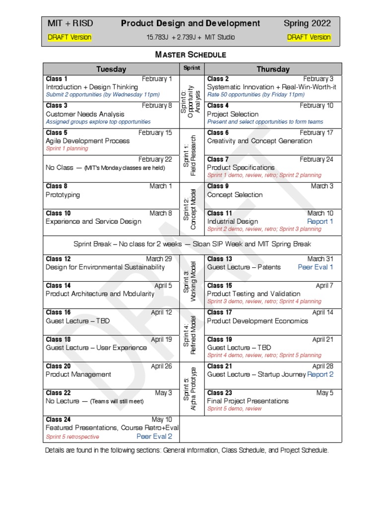 No Class — (MIT’s Monday classes are held) Product Specifications