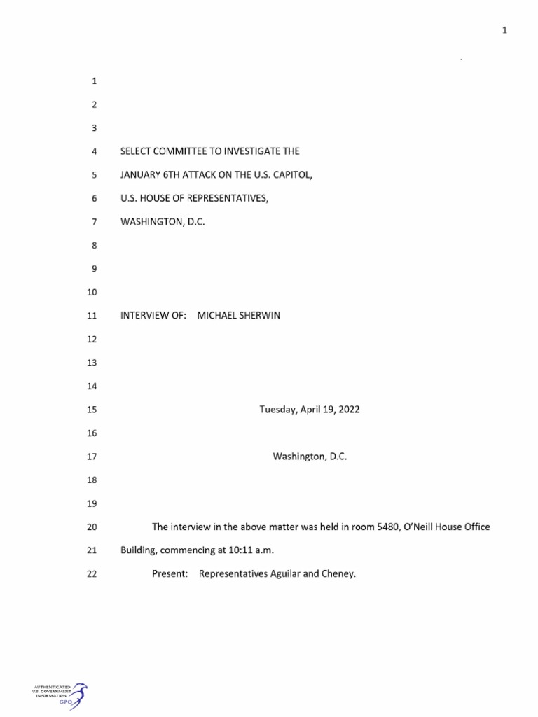 20 The interview in the above matter was held in room 5480, O'Neill House Office