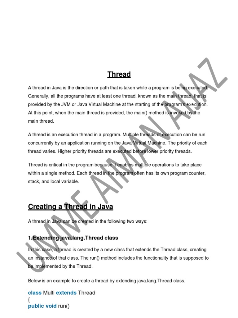 A thread in Java is the direction or path that is taken while a program is being executed.