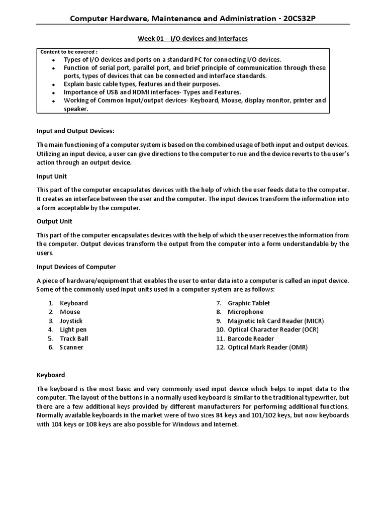 • Working of Common Input/output devices- Keyboard, Mouse, display monitor, printer and