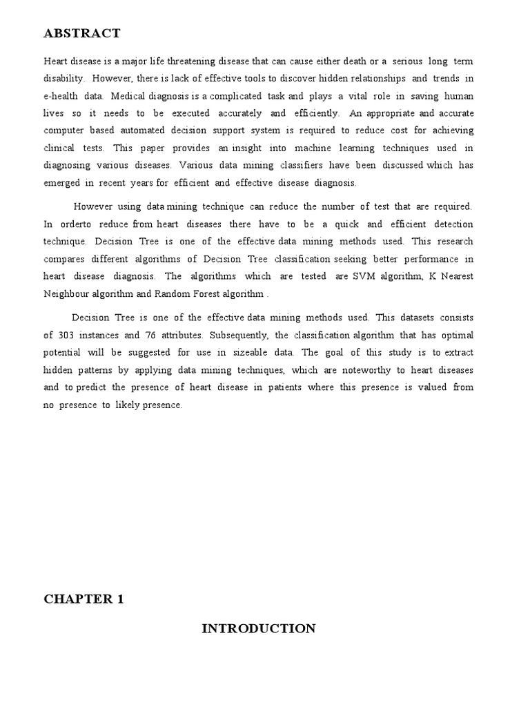 The proposed project identifies the risk factors for the different types of heart diseases. Most