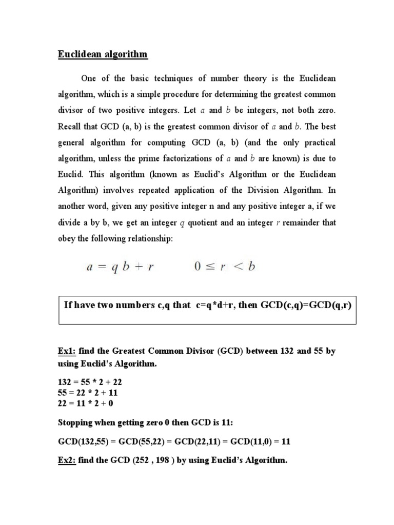 If have two numbers c,q that c=q*d+r, then GCD(c,q)=GCD(q,r)
